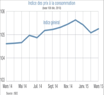 - Consommation. + 0,2 % au mois de marsEn mars, les prix sont en hausse de 0,2 %, révèle l'Isee dans son étude mensuelle. Une augmentation imputable à l'alimentation qui augmente de 1,3 %.C’est encore l’alimentation qui gonfle l’inflation, loin devant les services et les produits manufacturés, selon l’étude du mois de mars de l’Isee. Avec 0,2 % de hausse des prix par rapport à février, et 0,6 % sur les douze derniers mois, les ménages voientIl vous reste 84% de l'article à découvrir.Cet article est réservé aux abonnés.