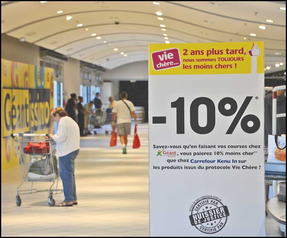- De catalogue en panneau d'affichage, les grandes surfaces n'hésitent plus à comparer leurs prix, comme la loi les y autorise depuis deux ans. Difficile pourtant, pour les consommateurs, de s'y retrouver dans ces effets d'annonce.A l’entrée de Géant Sainte-Marie, depuis quelque temps déjà, un panneau trône : « Savez-vous qu’en faisant vos courses chez Géant, vous paierez 10 % moins cher que chez Carrefour Kenu In sur les produits issus du protocole vie chère ? » Un appel qui s’appuie surIl vous reste 96% de l'article à découvrir.Cet article est réservé aux abonnés.