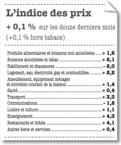 - ConsommationD'après l'Isee, les prix sont restés stables en mars. La hausse des prix de l'énergie et de l'alimentation est compensée par la baisse de celui des services, analyse l'institut.C’est un calcul strictement mathématique, que les consommateurs peuvent avoir du mal à croire, mais sur le papier, l’Institut de la statistique et des études économiques (Isee) est formel : au mois de mars, l’indice des prix à la consommation des ménages est restéIl vous reste 89% de l'article à découvrir.Cet article est réservé aux abonnés.