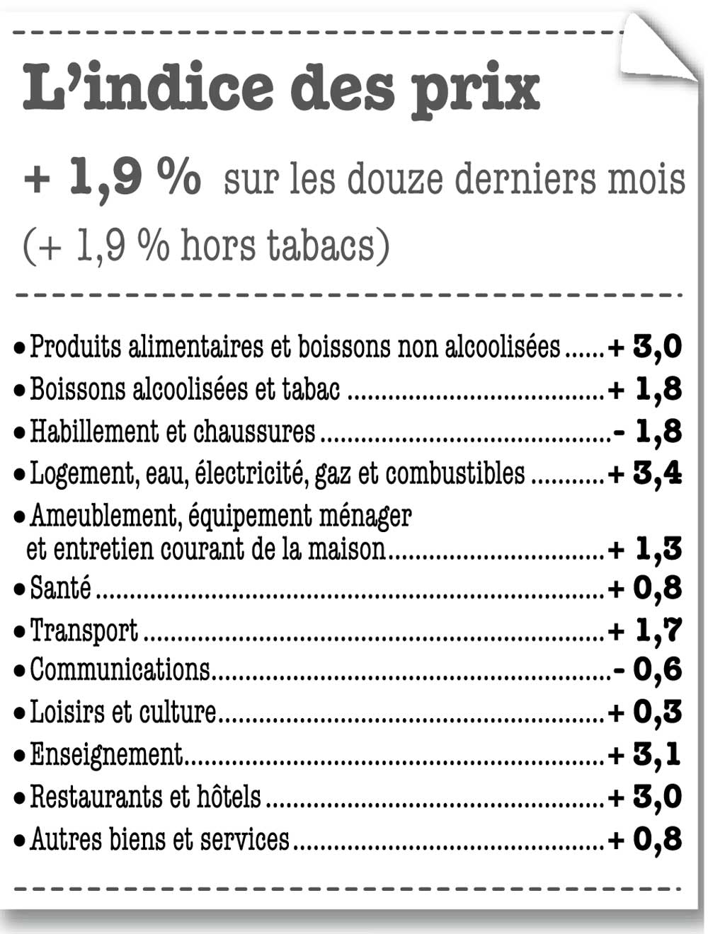 - Consommation. Indice des prixLa baisse des tarifs des vols internationaux a permis une légère diminution de l'indice des prix pour le mois de février.Les chiffres de l’Isee viennent de tomber. En février, l’indice des prix à la consommation des ménages est en baisse de 0,2 %. Une légère diminution qui s’explique par un recul des prix des services de 0,6 %.La baisse saisonnière des tarifs des vols internationaux (- 14 %),Il vous reste 77% de l'article à découvrir.Cet article est réservé aux abonnés.