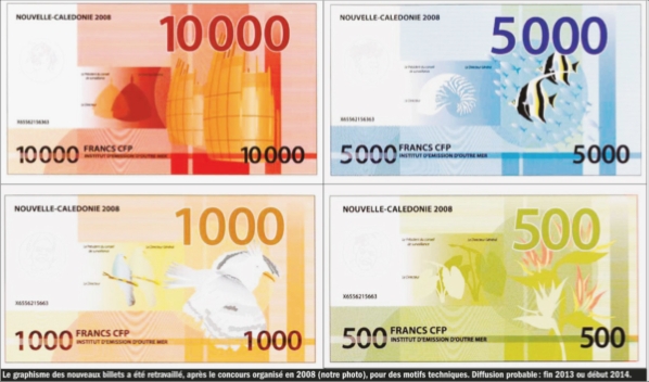 - n Economie. La date de circulation des nouveaux billets dévoiléePrès de cinq ans après la mise en place du comité de pilotage sur les signes identitaires, la date de mise en circulation des nouveaux francs CFP est enfin connue. Les Calédoniens devront patienter encore un peu pour découvrir leur graphisme.De passage en octobre, Nicolas de Sèze, le grand patron des Instituts d'émission d'outre-mer (IEOM), avait évoqué le renouvellement de la gamme de billets en francs CFP. Avec une première mise en circulation envisagée début 2014. La date est désormais connue avec précision, ce sera le 20Il vous reste 89% de l'article à découvrir.Cet article est réservé aux abonnés.