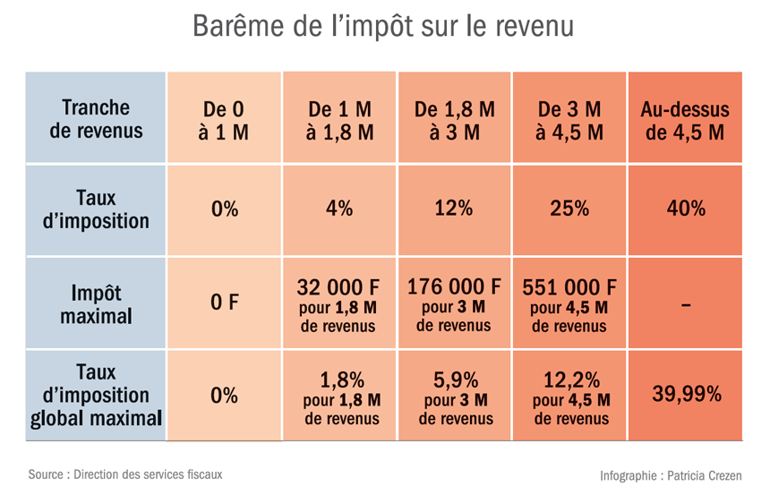 - Fiscalité. Après la TGC, voici l’IRPP. Le deuxième grand chantier fiscal de l’agenda partagé s’avance vers le devant de la scène. À l’approche de son examen par le Congrès, qui s’en saisira le 2 décembre, passage en revue des dispositions actuelles de l’impôt.Le barème d’imposition en vigueur Le revenu net global imposable est l’addition de tous les types de revenus du contribuable (salaires, pensions, loyers, intérêts…), diminué des charges déductibles (intérêts versés, salaires des gens de maison, divers crédits d’impôtIl vous reste 92% de l'article à découvrir.Cet article est réservé aux abonnés.