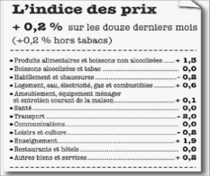 - Economie. Indice des prix à la consommation pour le mois de févrierLa livraison du mois de février pour l’indice des prix à la consommation des ménages s’inscrit dans la tendance du mois de janvier avec un recul identique de 0,1 %. En dépit de la hausse des prix de l’alimentation (+1,1 %) et de l’énergie (+0,7 %), l’indice bénIl vous reste 83% de l'article à découvrir.Cet article est réservé aux abonnés.
