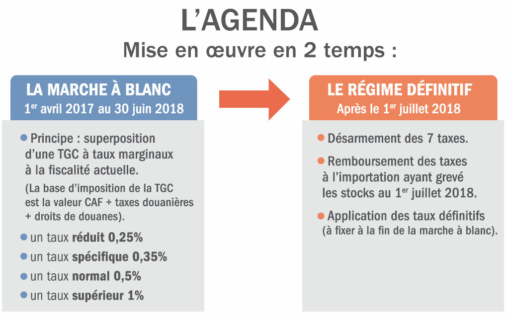 - Fiscalité. Le 1er avril, la taxe générale sur la consommation entrera en vigueur sous forme de test, la marche à blanc. Découvrez chaque jeudi notre page consacrée aux grands principes de la TGC. Aujourd’hui, Kévin Bramoullé, de la CCI, nous éclaire.À terme, sept taxes en une La taxe générale sur la consommation est destinée à prendre la place de 7 droits et taxes : TGI (taxe générale à l’importation), TBI (taxe de base à l’importation), TFA (taxe de fret aérien) ou TP (taxe de port), TSS (taxe de solidarité sur lesIl vous reste 95% de l'article à découvrir.Cet article est réservé aux abonnés.