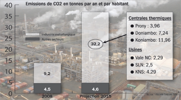 - Préoccupation des scientifiques et des environnementalistes, les émissions de CO2 par an et par habitant atteindront des sommets avec le développement des projets métallurgiques et des centrales électriques. Une configuration à étudier, vite.Quel décor ?De nouveaux projets métallurgiques ont éclos ces dernières années. Et le pays comptera possiblement, à terme, trois centrales électriques à charbon : KNS dans le Nord, Prony Energies dans le Sud et la SLN à Doniambo, selon le vœu d’Eramet. Soit une consommation globale duIl vous reste 96% de l'article à découvrir.Cet article est réservé aux abonnés.