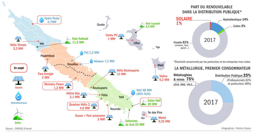 - ÉLECTRICITÉ. Enercal a présenté, hier, le bilan 2017 du système électrique. Et évoqué son avenir : en matière de renouvelable, les projets sont nombreux, les objectifs ambitieux… Mais la part dans la production reste faible.Des chiffres, des courbes, et un taux : 17 %. Dans la foule de données du bilan 2017 du système électrique calédonien, dressé hier par Enercal, c’est sûrement la part des énergies renouvelables dans la production qui marquera le plus les esprits. Une part en nette augmentation : elle étaitIl vous reste 96% de l'article à découvrir.Cet article est réservé aux abonnés.