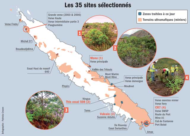 - Environnement. La restauration des milieux dégradés par l’exploitation minière fait l’objet d’une évaluation grâce deux projets de recherche : Recosynth et Bioindic. Objectif ? Dresser les critères de réussite afin « d’améliorer l’efficacité des pratiques. »Est-ce que ça marche ? Plus de 30 ans après le début de la revégétalisation minière en Nouvelle-Calédonie, la question mérite d’être posée. Non seulement pour « améliorer l’efficacité des pratiques », mais surtout pour « optimiser » des opérations longues, coûteuses et du coupIl vous reste 91% de l'article à découvrir.Cet article est réservé aux abonnés.