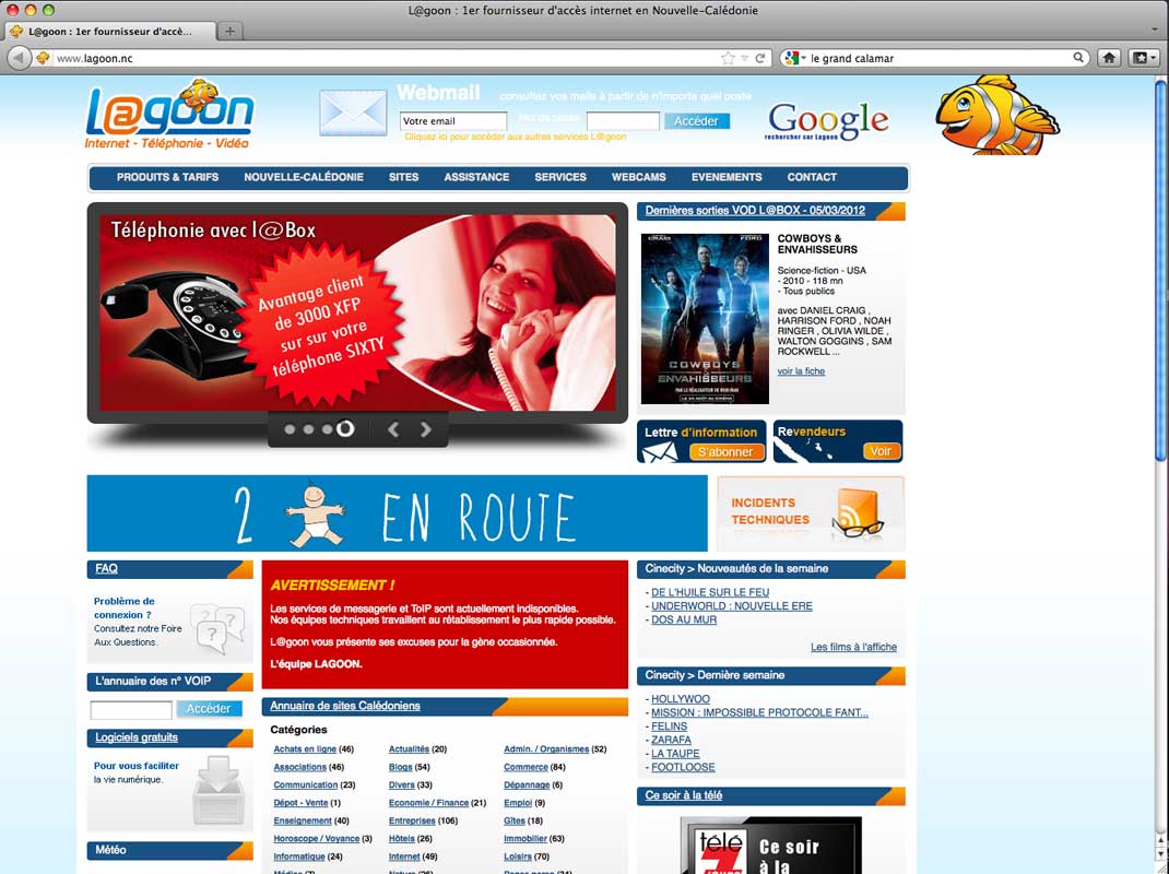 - CommunicationDepuis dimanche minuit, le fournisseur d'accès à internet Lagoon est victime d'un incident technique qui empêche ses clients d'accéder à de nombreux services, comme les e-mails et la téléphonie IP.Hier, les abonnés de Lagoon se sont longuement agacés sur leur clavier d’ordinateur, avant de saturer le serveur téléphonique ou la hotline du fournisseur d’accès. Boîtes mail et Webmail en panne, téléphonie IP indisponible et des centaines de serveurs hébergés chez Lagoon sontIl vous reste 85% de l'article à découvrir.Cet article est réservé aux abonnés.