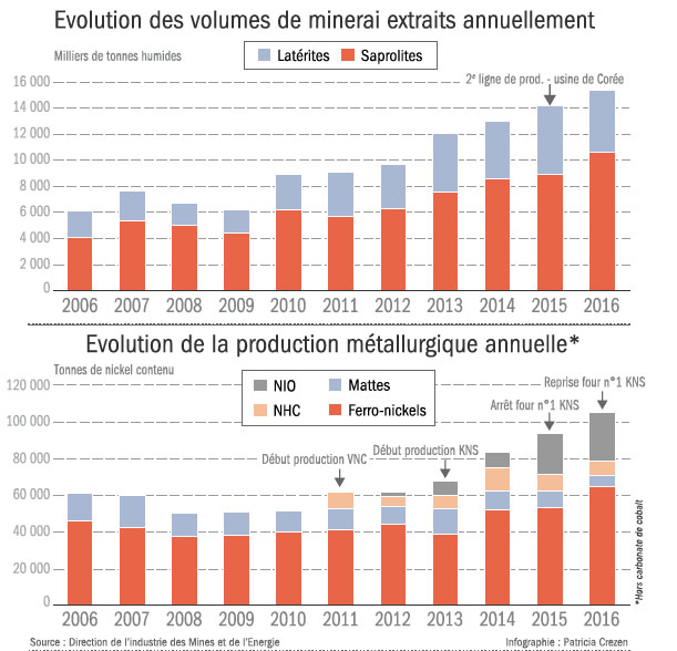 - Mines. L’extraction minière a continué de progresser l’an dernier, tandis que l’activité métallurgique a enregistré un nouveau record. Néanmoins, la baisse du cours a pénalisé les ventes en valeur, et les efforts de compétitivité ont contrarié l’emploi.La flèche a bougé sur le cadran de la balance. L’extraction minière a continué de progresser en Nouvelle-Calédonie en 2016, d’après la synthèse de l’Institut de la statistique et des études économiques tout juste publiée. Au compteur, 15,4 millions de tonnes humides de minerai deIl vous reste 93% de l'article à découvrir.Cet article est réservé aux abonnés.