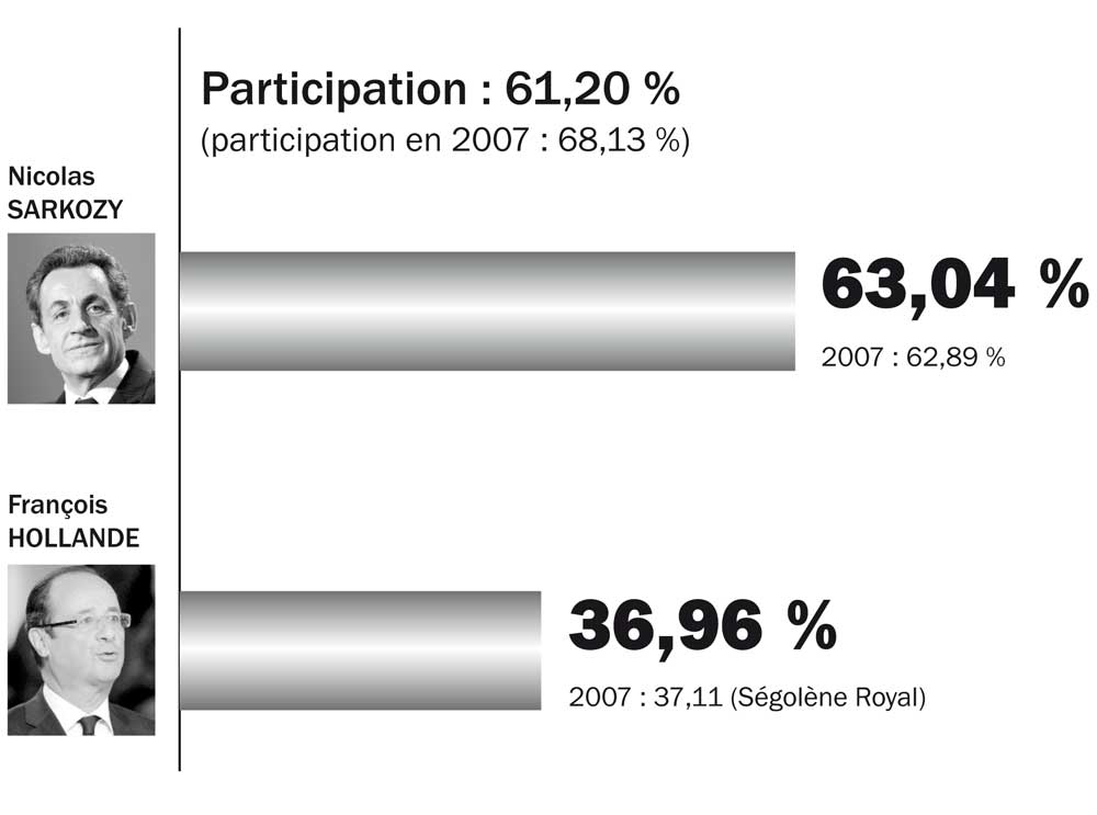 - Nicolas Sarkozy améliore légèrement son score en Calédonie tant en pourcentage qu'en nombre de voix. Mais, malgré un sursaut d'entre deux tours, le taux de participation est très inférieur à celui de 2007.Malgré une plus forte mobilisation qu’il y a quinze jours, la participation calédonienne au second tour de l’élection présidentielle 2012 n’a pas retrouvé les niveaux de 2007. Cette année-là, ils avaient été 68,13 % à voter au deuxième tour. Hier, ils n’ontIl vous reste 93% de l'article à découvrir.Cet article est réservé aux abonnés.