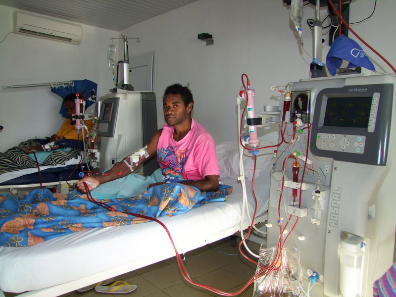 - Votre santéLorsque les reins n'assurent plus leur fonction d'épuration, la médecine doit prendre le relais. A Lifou, ils sont quatorze à être suivis à l'unité d'hémodialyse de proximité. Rencontre avec l'un d'eux.A 37 ans, Jacky est un vétéran du centre d’hémodialyse de proximité de l’ATIR (Association de prévention et de traitement de l’insuffisance rénale) de Wé, à Lifou. Tout a commencé en 1995, par un dysfonctionnement brutal des reins. Trois ans plus tard, il s’envoleIl vous reste 96% de l'article à découvrir.Cet article est réservé aux abonnés.