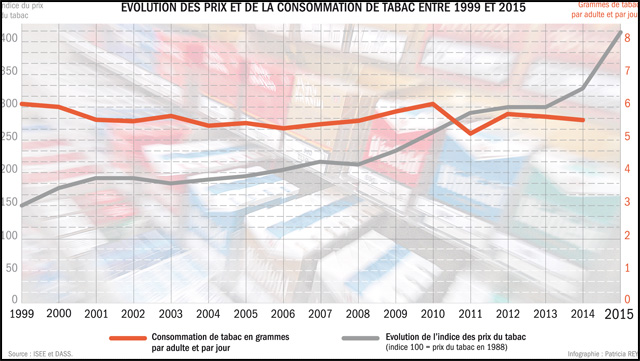 - Le prix du tabac augmente aujourd'hui de 30 %La barre symbolique des 1 000 francs est largement franchie. Les autorités sanitaires estiment que les jeunes et les personnes aux revenus modestes y seront sensibles.Le paquet de cigarettes calédonien est désormais le plus cher de l’Hexagone, avec l’augmentation de 30 % du prix du tabac, effective dès aujourd’hui.Pour les 67 % de fumeurs déclarant avoir envie d’arrêter, cette hausse brutale peut amorcer le « déclic », prIl vous reste 96% de l'article à découvrir.Cet article est réservé aux abonnés.