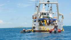 - Sciences. Mission Vahiné au récif Tabou pour une quinzaine de spécialistesUne quinzaine de scientifiques internationaux prélèvent et examinent des microalgues fertilisantes au récif Tabou, dans le cadre de la mission Vahiné organisée par l'IRD. Leur objectif : déterminer à qui profite l'azote qu'elles fixent. Car ces algues pourraient jouer un rôle dans la régulation du climat.Au large de l’îlot Amédée au récif Tabou, les plongeurs affrontent la houle. Ils surveillent de très près les mésocosmes, sortes de grandes épuisettes en forme de cylindres de 2,50 mètres de diamètre et quinze mètres de hauteur. Elles ont été installées début janvier par l&rsquoIl vous reste 93% de l'article à découvrir.Cet article est réservé aux abonnés.