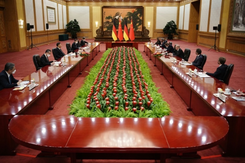 Renouant avec les visites en Chine de son prédécesseur, la démocrate-chrétienne Angela Merkel (12 voyages en 16 ans de pouvoir), le social-démocrate Scholz était accompagné d'une délégation d'industriels, dont les patrons de Volkswagen et BASF.