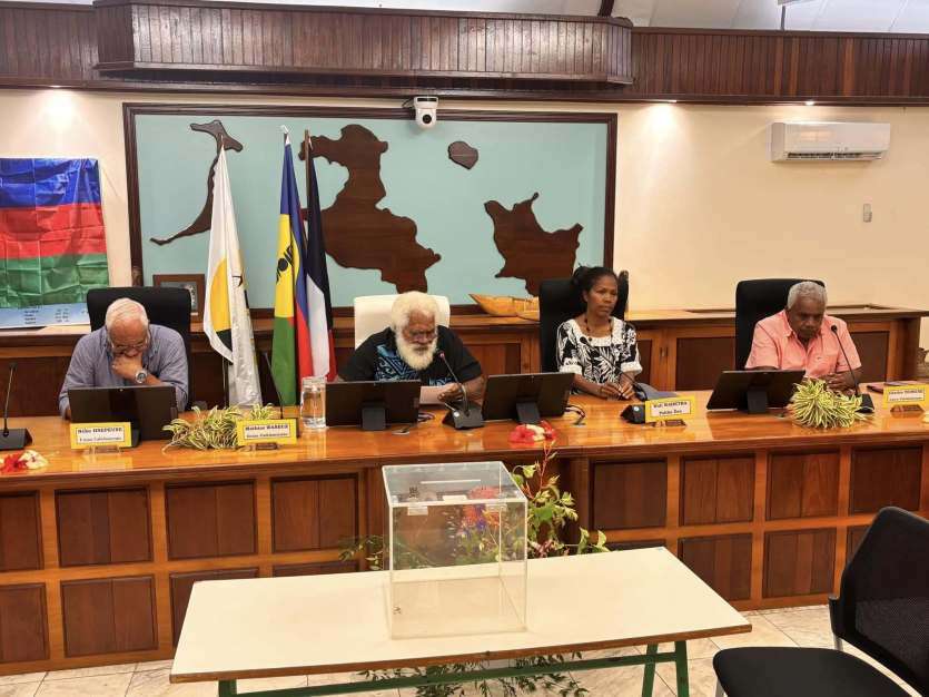 - Baptiste Gouret | Crée le 27.12.2024 à 11h10 | Mis à jour le 27.12.2024 à 11h10ImprimerL’élu UC-FLNKS et Nationalistes (au centre) a été élu président de la province des Îles, à la suite de la démission de Jacques Lalié. Photo province des îlesMathias Waneux a été élu ce vendredi 27 décembre à la tête de la province des Îles Loyauté. Il remplace Jacques Lalié, condamné à deux ans d’inéligibilité par la cour d’appel de Nouméa pour favoritisme.