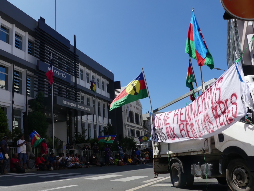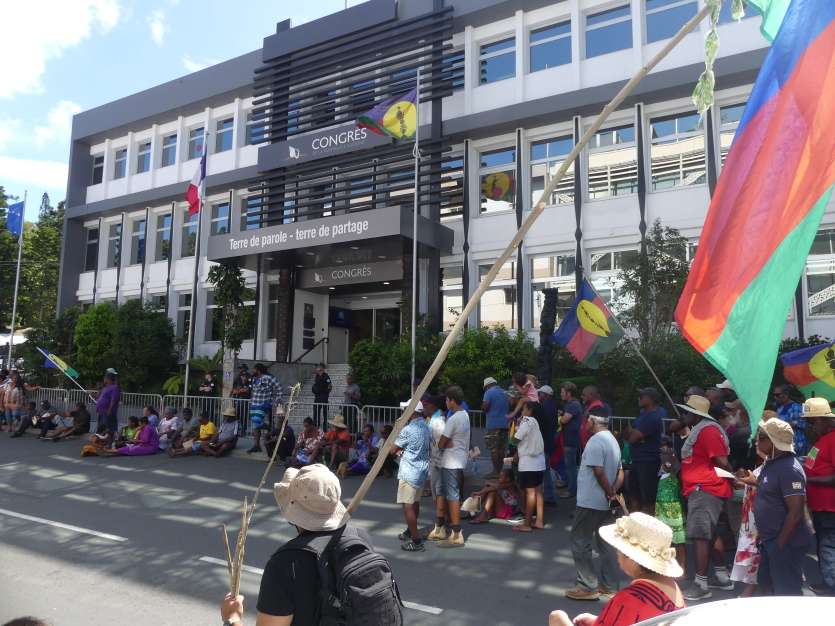 Pendant ce temps, au Congrès, les élus de la commission de la législation et de la réglementation générale (CLRP) se réunissaient pour donner leur avis sur le projet de loi organique censé reporter les élections provinciales au plus tard au 15 décembre 2024. "On demande à nos élus de refuser de donner du temps à l’État Macron qui a engagé dans le même temps un projet de loi constitutionnel en vue de modifier le corps électoral." Des agissements vus comme "un passage en force" sans attendre "un consensus" et "des compromis" qui ont "toujours permis de régler les difficultés" en Nouvelle-Calédonie. Les deux textes pourraient, selon les militants, renverser "les équilibres qu’on a trouvés il y a trente ans". "Aujourd’hui, c’est la construction de notre destin commun que l’on vient détruire."