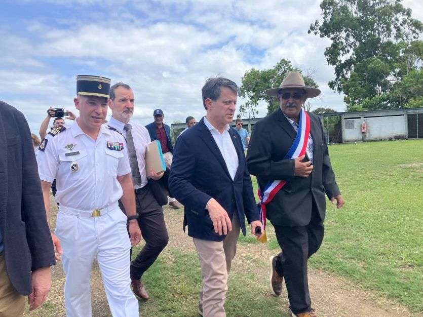 - Baptiste Gouret | Crée le 25.02.2025 à 12h08 | Mis à jour le 25.02.2025 à 12h13ImprimerManuel Valls aux côtés de Wilfrid Weiss, maire de Koumac, à son arrivée au RSMA. Photo CaledoniaLe ministre des Outre-mer était à Pouembout et Koumac, ce mardi 25 février, pour visiter le lycée Michel-Rocard et l’antenne du RSMA. Il est attendu à Hienghène en début d’après-midi pour un hommage à Jean-Marie Tjibaou.