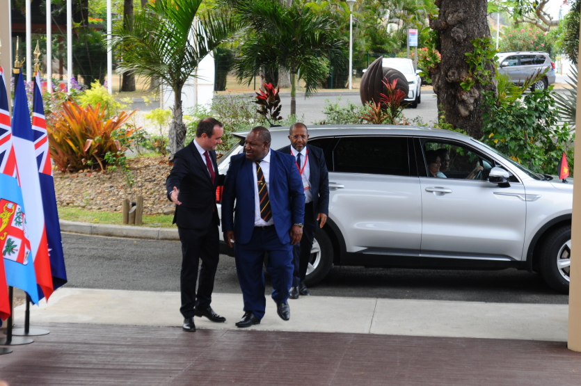 Le ministre frnçais a eu des échanges bilatéraux avec l'ensemble de ses homologues, dont Win Bakri Daki, ministre de la Défense de Papouasie Nouvelle-Guinée. Photo Anthony TejeroPour ce faire, les ministres des sept États membres ont ainsi signé, ce mercredi, une lettre d’intention instaurant des "protocoles de partage d’informations" entre "partenaires de confiance". Autres avancées des travaux lors de ce sommet : les membres ont convenu d’étudier la proposition de l’Australie de créer un "groupe d’intervention dans le Pacifique", ainsi que de mieux coordonner leurs offres et leurs besoins en matière de formation.