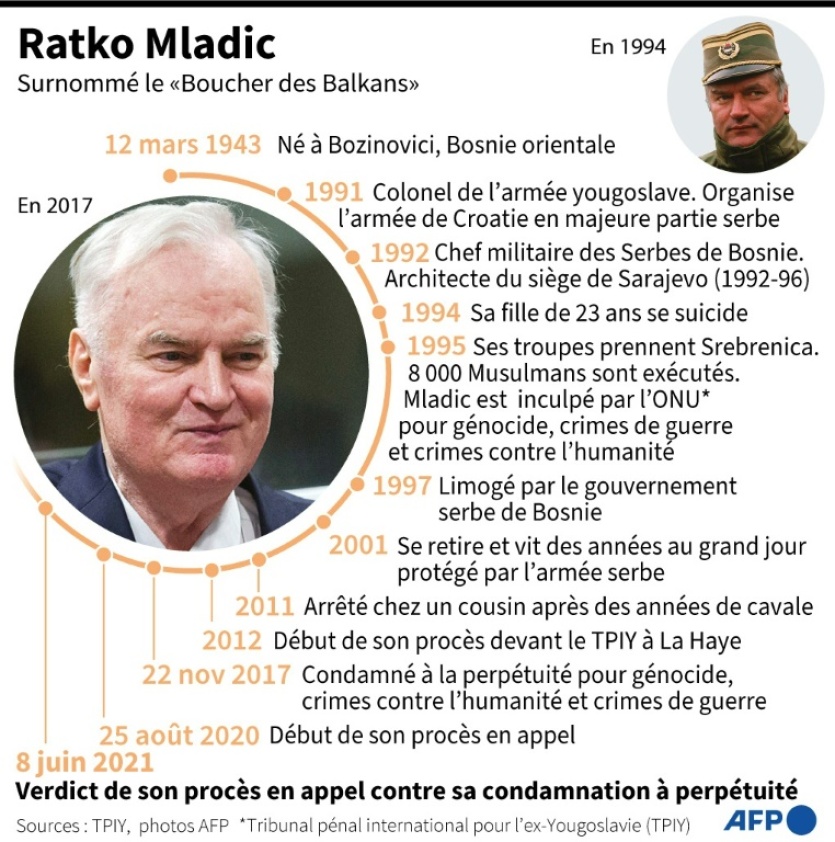Plus d'un quart de siècle après le conflit, l'ex-général de 78 ans conserve parmi les siens une aura de "défenseur du peuple serbe" malgré sa condamnation en 2017 par la justice internationale pour génocide, crimes de guerre et crimes contre l'humanité.