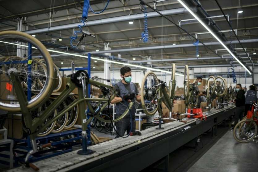 Avec la pandémie et ses confinements, "les gens se sont battus pour avoir des vélos, donc on en a vendu beaucoup", explique Filipe Mota au milieu des quatre lignes de montage où près de 200 travailleurs aux gestes précis assemblent des bicyclettes pour une quarantaine de marques.