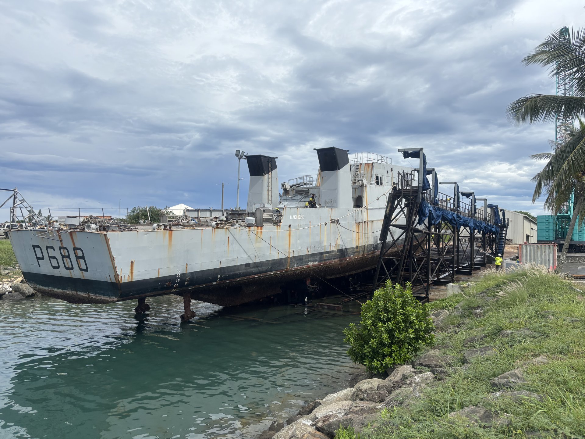- A.T. | Crée le 23.04.2026 à 17h54 | Mis à jour le 23.04.2026 à 17h54ImprimerUne centaine de salariés est mobilisés par les opérations de déconstruction et de dépollution des eux patrouilleurs de la Marine nationale. Photo DRC’est une première par l’ampleur du chantier : les deux patrouilleurs de la Marine nationale, La Moqueuse et La Glorieuse, sont en cours de démantèlement à Nouméa. Ce chantier de dépollution et de déconstruction "d’une grande technicité", qui a impliqué des investissements et une mise aux normes métropolitaines en amont, pourrait ouvrir la voie à la création d’une véritable filière navale locale et attractive dans la région Pacifique. C’est du moins l’ambition du gouvernement.