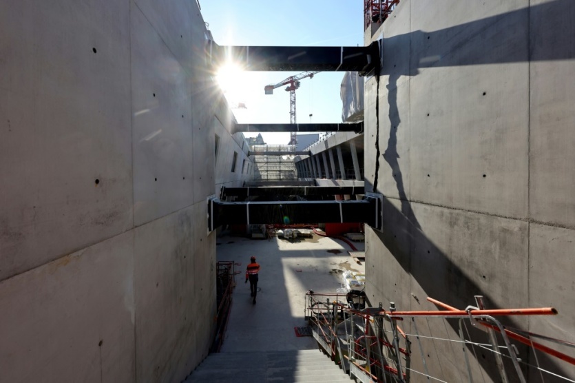 Sur le chantier de la construction de la nouvelle gare pour le prolongement du RER E, porte Maillot à Paris, le 6 septembre 2021 Thomas COEX [AFP]