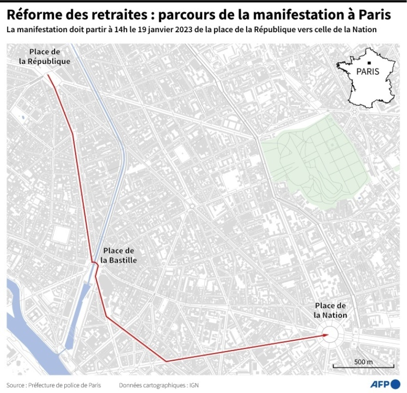 Réforme des retraites : parcours de la manifestation à Paris Nalini LEPETIT-CHELLA [AFP]MERCI DE VOUS IDENTIFIER