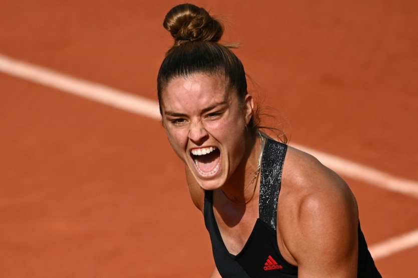La Grecque Maria Sakkari après son succès en 8e contre l'Américaine Sofia Kenin, le 7 juin 2021 à Roland-Garros Anne-Christine POUJOULAT [AFP]MERCI DE VOUS IDENTIFIER