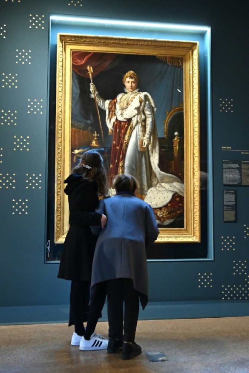 Des visiteuses admirent un "Portrait de Napoléon en costume de sacre" du peintre François Gérard exposée au musée des Marchés de Trajan, le 11 mars 2021 à Rome ANDREAS SOLARO [AFP]