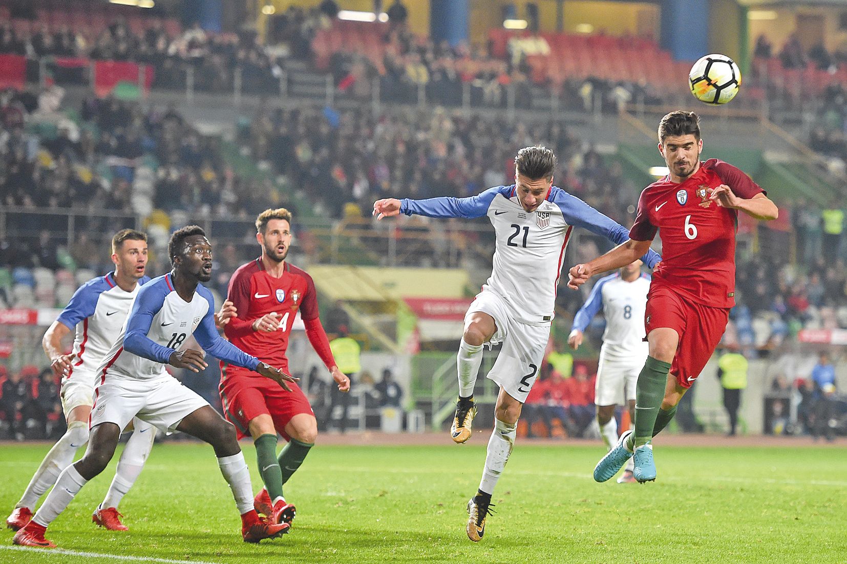 Le Portugal (en rouge), sans Cristiano Ronaldo, n’a pas été au-delà du match nul face aux États-Unis (1-1), hier chez lui, à Leiria, en match amical de préparation au Mondial-2018 organisé en Russie. En mettant à l’épreuve ses réservistes, dont la plupart étaient appelés pour la première fois, le champion d’Europe en titre a eu besoin d’une demi-heure pour rentrer dans son match, mais n’a pas réussi à faire chuter les Américains, qui ont eux raté leur qualification pour la Russie, une première depuis 1986. Moins bien huilée qu’à l’accoutumée, la formation de Fernando Santos a abusé du jeu direct et concédé de nombreuses occasions face à un onze américain rajeuni.