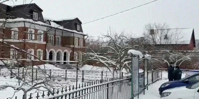 Photo diffusée par les autorités russes le 13 décembre 2021 de policiers devant un établissement orthodoxe mitoyen du couvent Vvedenski Vladytchny à Serpoukhov, en Russie Handout [Investigative Committee of Russia/AFP]