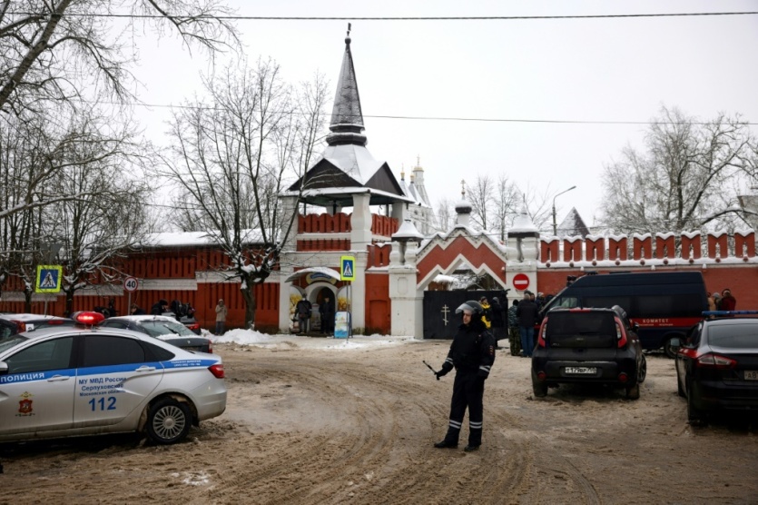 Des policiers devant le couvent Vvedenski Vladytchny, le 13 décembre 2021 à Serpoukhov, en Russie Dimitar DILKOFF [AFP]