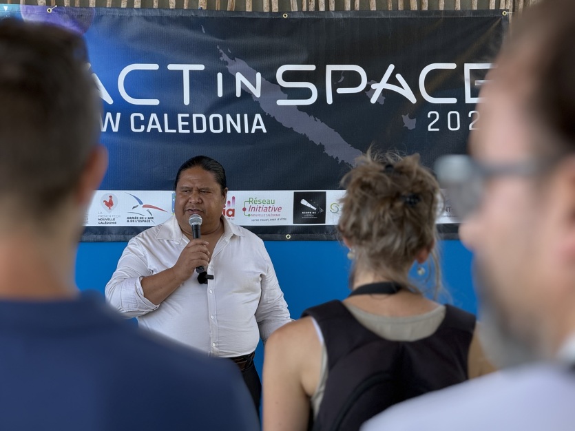 Act In Space, hackathon autour de l’espace organisé par le CNES et l’ESA, et porté en Nouvelle-Calédonie par le Gouvernement de la Nouvelle-Calédonie. Petelo Sao, membre du gouvernement en charge de l’innovation technologique, lors du lancement de l’événement. Photo Aurélia DumtéUne maison de l’espace à Oua Tom