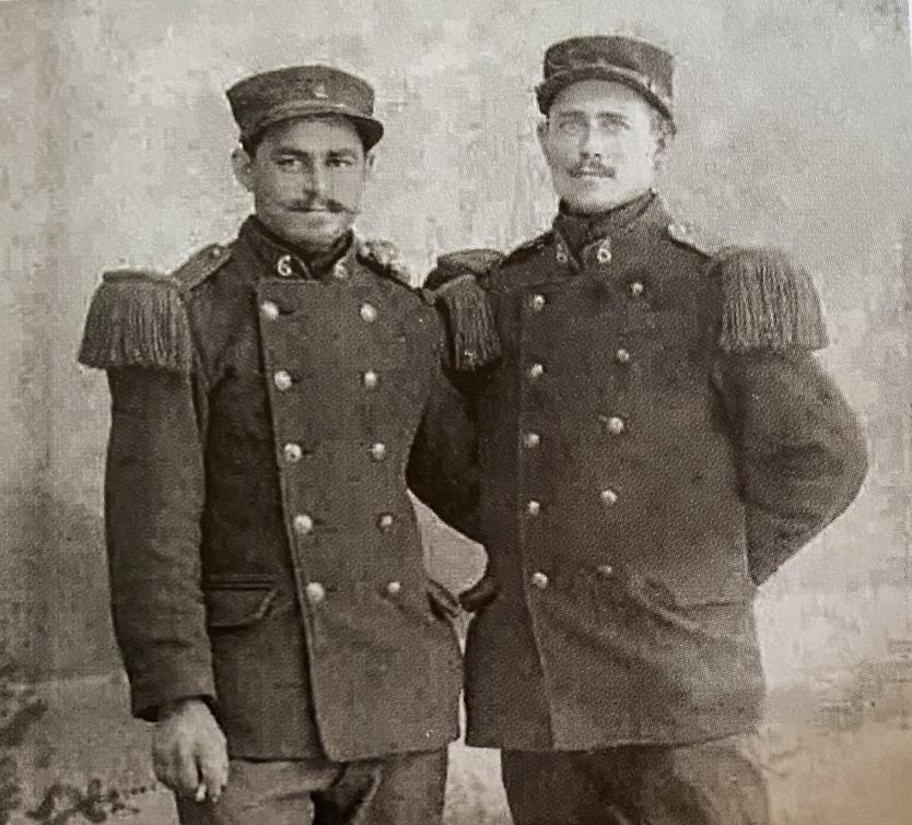 Alphonse et Paul Jarossay en 1916.Alphonse et Paul deviennent bouchers. Mon grand-père, Alphonse, exerce à la quarantaine de Ducos, puis tous les deux partent au front. Mon grand-oncle Paul en revient blessé à la main, et se marie avec Henriette Guillonneau avec qui il a dix enfants. La famille s'installe rue Taragnat et élève du bétail. Henri, leur fils aîné, arrête tôt l'école et aide ses parents. Les journées sont rudes.