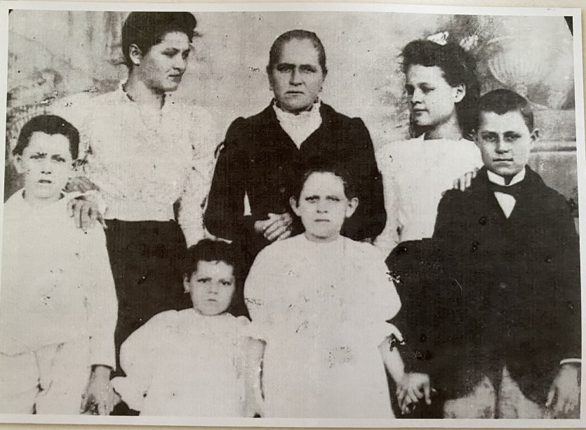 Alphonsine Bourbon (l'épouse du pionnier) et ses six enfants: Alphonse et Paul, Célénie, Camille (appelée Blanche), Victorine et Mathilde.En 1883, à Bourail, il épouse Alphonsine Bourbon, également fille de transporté. De leur union vont naître sept enfants: Alphonse et Paul et leurs sœurs, les futures Mmes Célénie Cureau, Camille Wannisberghe, Victorine Foot, Mathilde Papavoine. Eugène, leur troisième fils, est décédé en bas âge. Le 17 juin 1886, alors qu'il pouvait retourner en France avec femme et enfants, François-Victor reste en Nouvelle-Calédonie et est mis en concession provisoire sur un lot rural à Bourail dont il devient propriétaire cinq ans plus tard. Or en 1891, la famille quitte la campagne et s'installe rue de Sébastopol à Nouméa. Mon arrière-grand-père devient stockman puis officier mécanicien à bord du Fiado. Ce petit cargo fait la navette entre Nouméa et Sydney en transportant charbon et bétail, et parfois il fait aussi le tour de côte. François-Victor décède le 20 juin 1897 d'un abcès au foie, à 41 ans.
