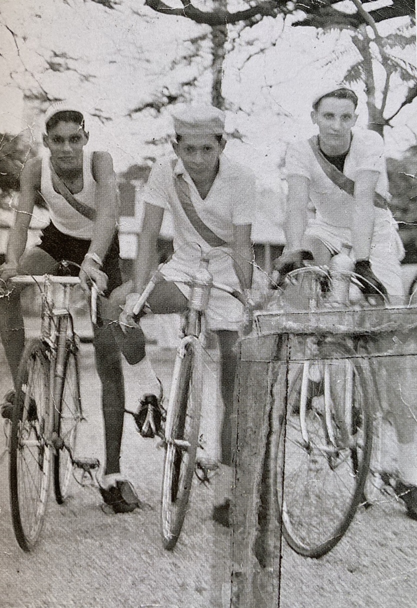 Nouméa, 15 avril 1950. Sur cette photo où figure, à droite, Félicien Komornicki, Eric Soekarjan, le mari de Sylviane, a reconnu son oncle Dick Soekardjan (dont l'orthographe diffère) au centre et André Beney, à gauche.Félicie, le lien entre deux branches