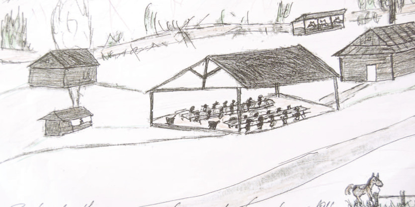 Le cimetière de Nessadiou, à Bourail, dessiné par Abdelkader Boufenèche, tel qu'il l'a connu en 1946. Photo DRUn exemple de cette solidarité qui perdure encore aujourd’hui, c’est la sadaga. Après un malheur, un décès par exemple, on se réunit pour faire la sadaga. C’est une cérémonie musulmane, mais les chrétiens participent aussi, tout le monde vient, on ne fait pas de différence.