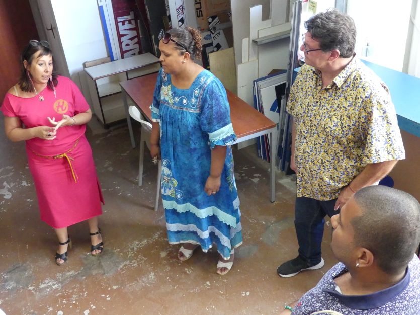 Rebecca Frolla-Miñana, fondatrice et directrice d’Hanvie, a reçu des élus du gouvernement et du Congrès, lundi, dans les locaux de l’association, à Magenta. Photo Baptiste GouretDe quoi "créer chez eux une appétence pour certaines techniques manuelles", estime Rebecca Frolla-Miñana. Surtout, cette expérience leur apprend le travail en entreprise, la rigueur et leur apporte une confiance en eux qui leur fait souvent défaut. Des qualités qui, une fois acquises, facilitent considérablement leurs chances d’être recrutés. "On les garde entre huit et neuf mois en insertion avant une sortie sur un emploi durable, une formation qualifiante ou un projet d’entrepreneuriat."