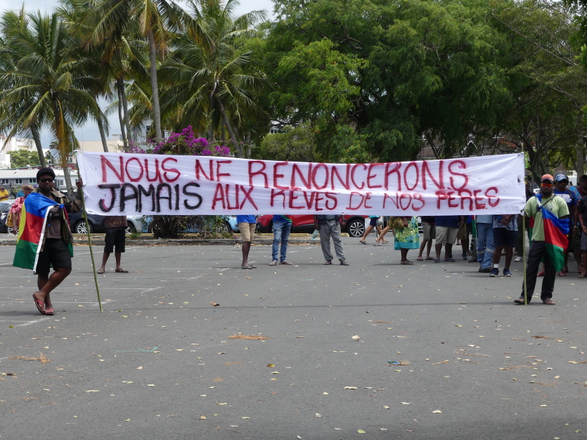 Une critique reprise par Charles, Jacques et Maurice, un peu à l’écart du cortège, qui s’apprêtent à rejoindre la foule. "Depuis la poignée de mains, il y a eu de nombreuses avancées, il ne faut pas revenir dessus." Pour les trois hommes, il est nécessaire de "prendre le temps de la réflexion" plutôt que "de nous imposer des solutions sur un avenir qui nous concerne". Ils voient, dans le document martyr, une volonté d’asseoir une "implantation diplomatique de la France" au détriment des intérêts du "peuple originel". "Il y a l’État, les institutions, mais aussi le peuple, notamment kanak, et il n’est pas d’accord avec ce qu’il se passe aujourd’hui."