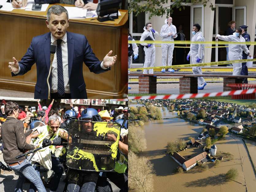 - AFP | Crée le 01.01.2024 à 05h00 | Mis à jour le 01.01.2024 à 05h00ImprimerLoi immigration, l’enseignement pris pour cible, réforme des retraites et aléas climatiques figurent dans les événements marquants de l’année 2023 en France. Photos AFP et DRUne réforme des retraites vivement contestée et adoptée sans vote au Parlement, des cités qui s’embrasent sur fond de méthodes policières contestées, une alerte "Urgence attentat" après le meurtre d’un enseignant, et une loi immigration très controversée ont marqué l’année 2023 en France.