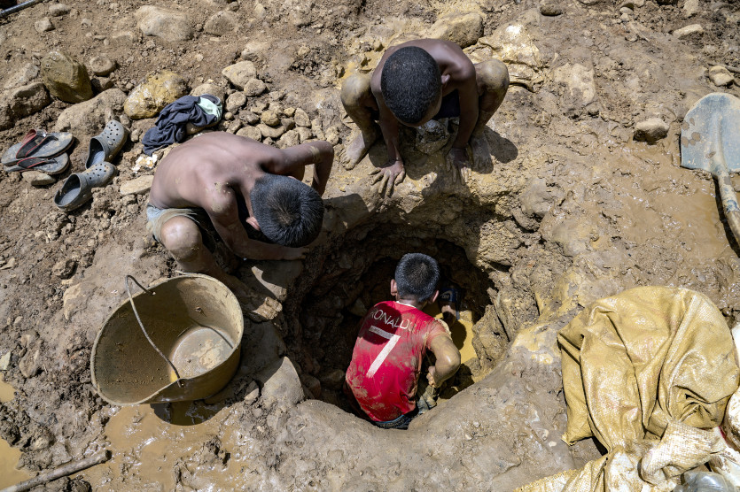 Ils travaillent accroupis, torse nu, recouverts de boue. Ou doivent transporter, courbés sous leur poids, des sacs de boue d’un trou à un autre. Martin vit à El Peru, un hameau d’El Callao. Il n’est jamais allé à l’école. Seul l’un de ses cousins, âgé de 9 ans, reçoit une éducation "parce que sa mère l’y oblige".