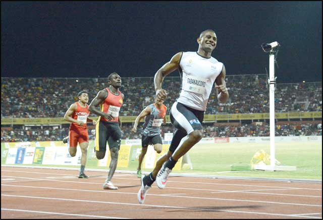 - L'image du jour.Les sprinters papous avaient annoncé vouloir tout gagner en athlétisme. Mais mardi soir dans la nuit chaude d'un stade Sir John Guise plein à craquer, un Fidjien a brisé le rêve de tout un pays. Sur le 100 m, considéré comme la reine des épreuves, Tabakaucoro s'est imposé enIl vous reste 35% de l'article à découvrir.Cet article est réservé aux abonnés.