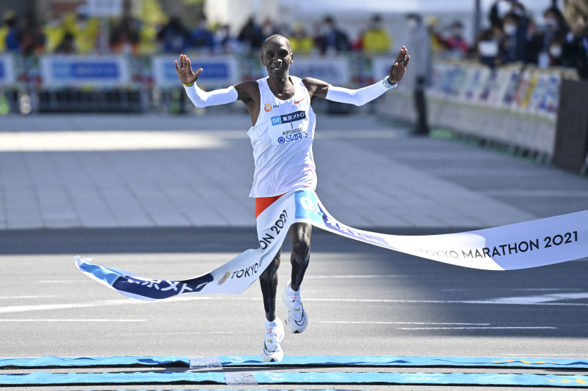 - Le Kényan Eliud Kipchoge a remporté dimanche le marathon de Tokyo, mais a échoué à battre son propre record du monde, établi à Berlin en 2018 (2h01'39), en franchissant la ligne après 2 heures, 2 minutes et 40 secondes. La légende de la course à pied, 37 ans, est aussi détenteur d'unIl vous reste 73% de l'article à découvrir.Cet article est réservé aux abonnés.