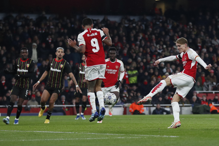 - Rémi BOUVERESSE / AFP | Crée le 30.11.2023 à 10h02 | Mis à jour le 30.11.2023 à 10h58ImprimerSur une action d’école, Martin Odegaard a marqué le cinquième but d’Arsenal, bouclant une fin de première mi-temps catastrophique des Lensois à l’Emirates stadium, jeudi matin. Photo de Ian Kington / AFPQuatre buts en moins de quinze minutes. En presque un quart d’heure en première période, Lens a vécu l’enfer à Londres face à Arsenal (6-0) jeudi matin, disant adieu à ses rêves d’accession aux huitièmes de finale de la Ligue des champions.