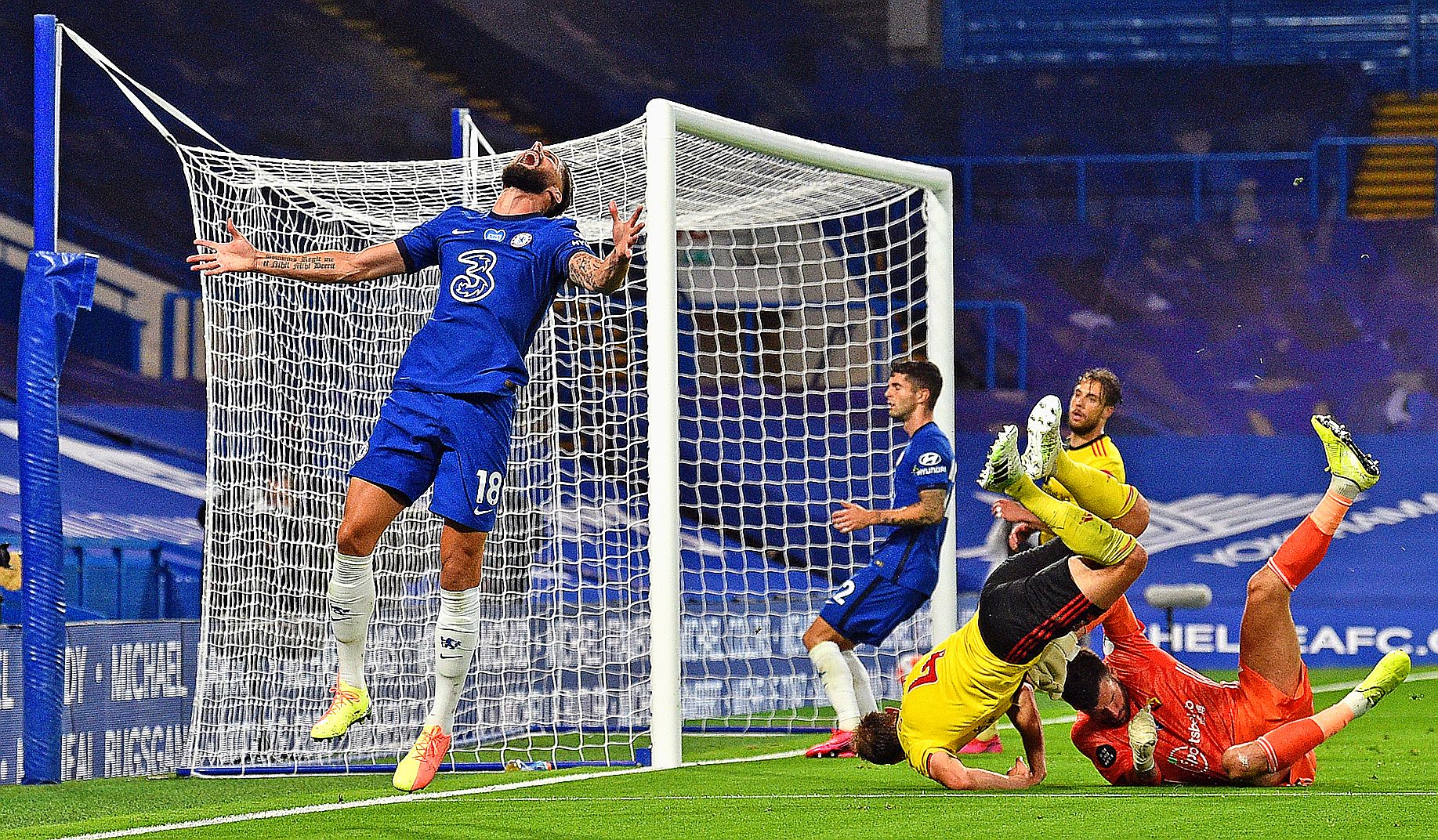 - FOOTBALL. La 33e journée (sur 38) du championnat anglais a souri hier aux attaquants français. Chelsea, 4e derrière Liverpool, Manchester City et Leicester, a gagné 3-0 contre Watford (17e) avec un but d’Olivier Giroud (photo, 28e). Manchester United (5e) s’est imposé 5-2 face àIl vous reste 35% de l'article à découvrir.Cet article est réservé aux abonnés.