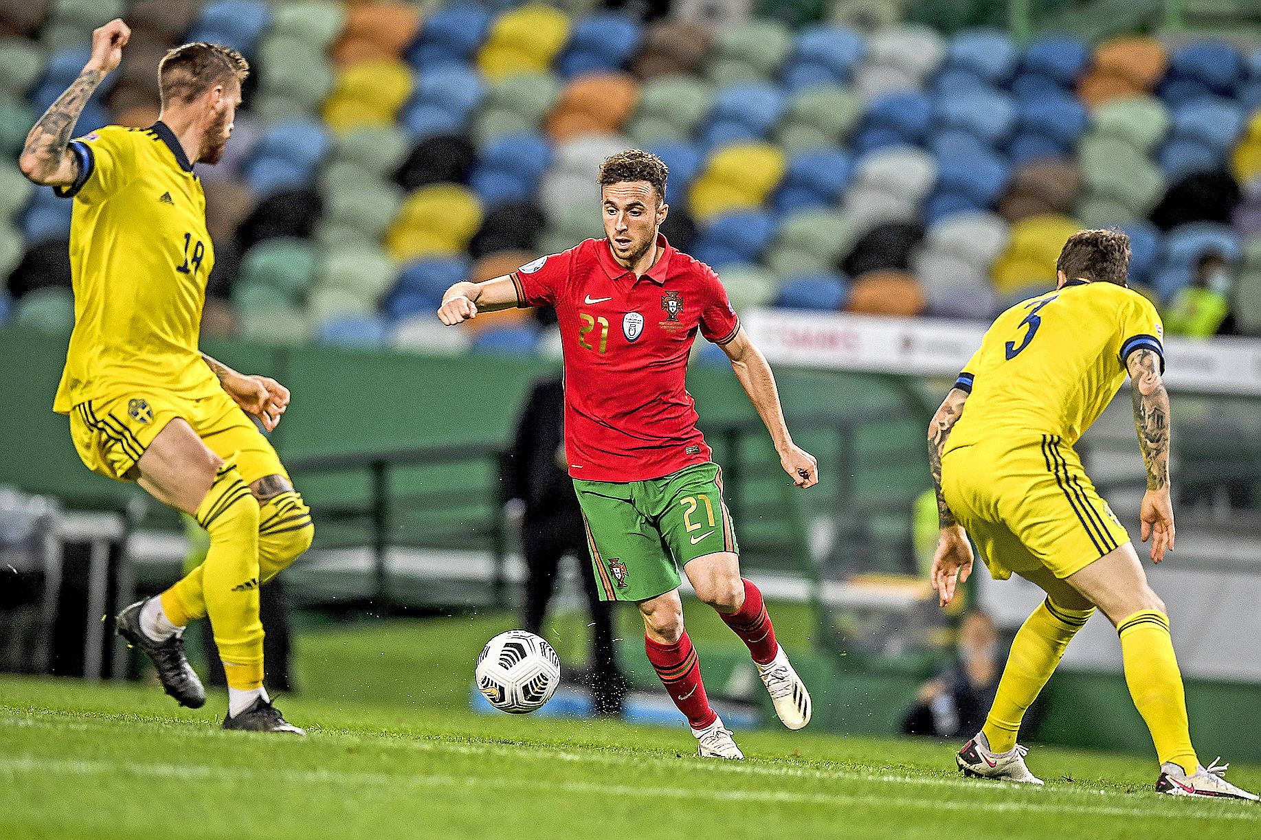 - FootballDans le même groupe que la France, le Portugal, sans Cristiano Ronaldo, a battu hier la Suède 3-0 avec notamment un doublé du nouveau joueur de Liverpool, Diego Jota (au centre). L’Italie et les Pays-Bas ont fait 1-1. La Pologne a dominé la Bosnie-Herzégovine 3-0 avec deux buts de RobertIl vous reste 41% de l'article à découvrir.Cet article est réservé aux abonnés.