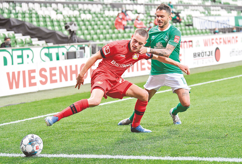 - FOOTBALL. Le Bayer Leverkusen s’est imposé chez le Werder Brême (4-1) hier en clôture de la 26e journée (sur 34) du championnat allemand, qui a repris (sans public) ces derniers jours après deux mois d’interruption en raison du coronavirus. Le Bayer Leverkusen a réussi son redémarrageIl vous reste 72% de l'article à découvrir.Cet article est réservé aux abonnés.