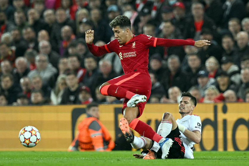Le Brésilien Roberto Firmino a marqué pour Liverpool. Photo AFPPour sa part, Liverpool s’est qualifié hier en éliminant Benfica après un match nul 3-3 en Angleterre. Les Reds, qui avaient gagné 3-1 à l’aller à Lisbonne, ont pu compter sur un doublé (55e, 65e) de l’attaquant Roberto Firmino (en rouge, à droite) et un but de la tête du défenseur français Ibrahima Konaté (21e). Dans ce match retour, les Portugais n’ont rien lâché en égalisant dans les dix dernières minutes grâce à Darwin Nunez (82e), mais cela n’a pas suffi. En demi-finale, Liverpool affrontera Villarreal, tombeur la veille du Bayern Munich.