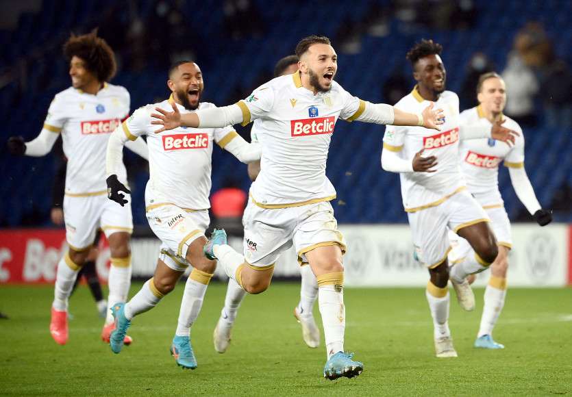 - AFP | Crée le 01.02.2022 à 10h00 | Mis à jour le 01.02.2022 à 10h09ImprimerLes joueurs de Nice célèbrent leur qualification après la victoire face au PSG. Photo AFP / FRANCK FIFEA deux semaines d'affronter le Real Madrid en Ligue des champions, le Paris Saint-Germain a été éliminé dès les 8es de finale de la Coupe de France.