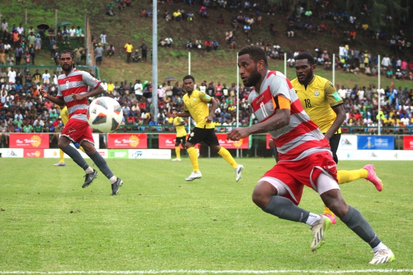 Lors de la première mi-temps, les Cagous ont confisqué le ballon à leurs adversaires vanuatais, sans parvenir à en faire bon usage. La délivrance est venue de Makalu Xowi qui a ouvert le score dans le temps additionnel en marquant de la tête, à la réception d’un ballon remis, également de la tête, par Lues Waya, consécutivement à une longue touche (1-0, 45e+4).